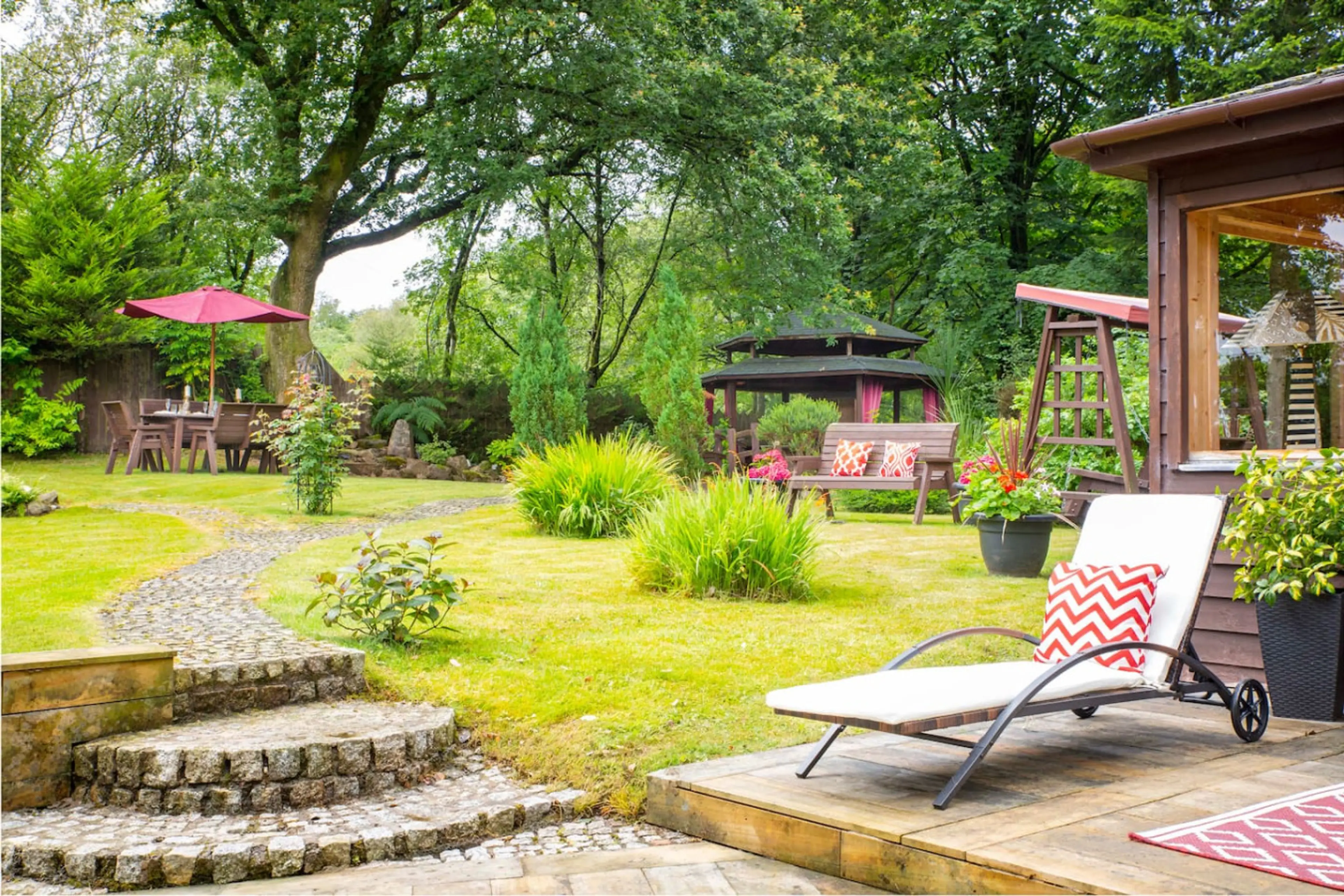 A spacious, 4-bed luxury retreat with private hot tub, sauna and outdoor kitchen – just 20 minutes from Loch Lomond & The Trossachs National Park. - Secluded private garden with hot tub, sauna, outdoor kitchen and gazebo. - Open-plan living with cosy movie room and large dining space. - 5-star ho...